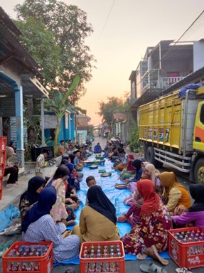 Realitasnya, warga Desa Lambangan masih menjunjung tinggi tradisi keagamaan salah satunya yakni perayaan 1 Muharram yang dilaksanakan pada 08 Juli 2024 dengan dilakukannya tradisi “Bancakan”. Tradisi “Bancakan” di Desa Lambangan memiliki keunikan tersendiri. Setiap gang di desa ini terlibat dalam tradisi tersebut, seluruh warga berkumpul. dilanjutkan dengan pembacaan doa bersama yang dipimpin oleh tokoh agama setempat. Setelahnya, seluruh warga menikmati hidangan dalam satu wadah besar yang ditempatkan di tengah-tengah mereka. Hidangan tersebut disiapkan oleh warga secara gotong-royong. Tradisi ini bukan hanya sebagai bentuk perayaan, tetapi juga memperkuat rasa kebersamaan dan solidaritas diantara warga desa.