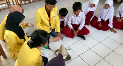 Untuk memperkuat pemahaman siswa, para mahasiswa KKN menyajikan sebuah eksperimen mini mengenai proses terjadinya gunung meletus. Eksperimen ini menggunakan bahan-bahan yang sederhana dan aman seperti soda kue, cuka, sabun cair, dan pewarna makanan. Simulasi ini tidak hanya memberikan visualisasi nyata dari proses erupsi gunung, tetapi juga menumbuhkan rasa ingin tahu dan semangat belajar para siswa.