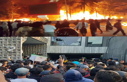Sejak Jumat pagi saat massa aksi baru saja digelar, aparat sudah gencar menembakkan gas air mata untuk membubarkan massa. Namun, sementara itu, sejumlah orang yang tidak diketahui identitasnya tiba-tiba mulai membakar dan merusak sejumlah fasilitas umum dan gedung pemerintahan seperti gedung DPRD, Markas Kepolisian, halte, stasiun, dan lainnya. Hal ini bisa jadi dipicu oleh sikap represif aparat yang semakin memuncak, yang ditandai dengan penembakan gas air mata yang semakin intens dan penangkapan 200 massa aksi tanpa adanya pendampingan hukum pada hari tersebut.