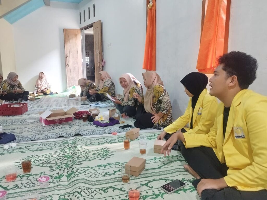 Kegiatan ini juga diisi dengan sesi diskusi interaktif mengenai menu sehat bagi ibu hamil dan balita, pentingnya konsumsi tablet tambah darah, serta cara mengakses layanan KB di desa. Ibu-ibu PKK tampak aktif bertanya dan berbagi pengalaman seputar pola makan keluarga sehari-hari.